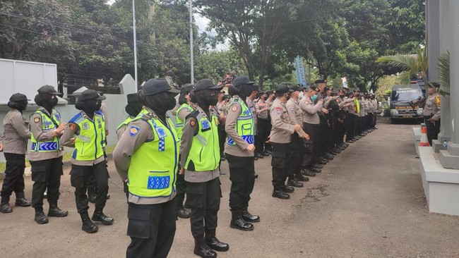 Pantauan detikcom di lokasi, Jumat (4/3/2022), polisi menggelar apel mulai pukul 13.00 WIB. Polisi berbaris rapi.