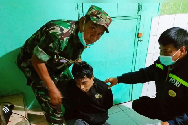 Anggota Koramil 04 Cengkareng menangkap Saepudin, pelaku penusukan dua warga di Jalan Pedongkelan RT 012/RW 013 Kelurahan Kapuk, Kecamatan Cengkareng, Jakarta Barat. Dua orang yang menjadi korban Saepudin bernama Anwar Sanusi dan Sunadi.