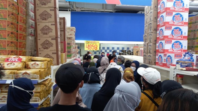 Tepat pada pukul 10.20 WIB minyak goreng tersebut hadir dan ibu-ibu ini berebutan mengambil minyak goreng. Namun, saat ini pantauan detikcom pada pukul 10.40 WIB antrean ibu-ibu kembali berlanjut untuk membeli minyak goreng.