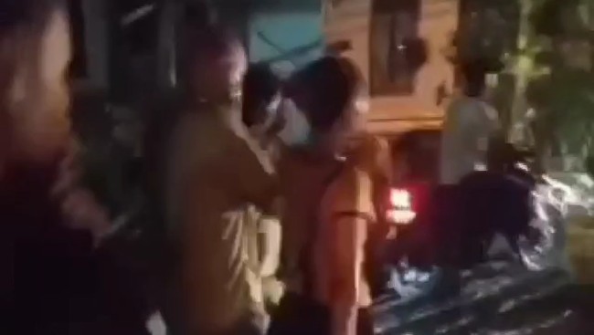 Dalam video viral tersebut, kedua warga tertunduk malu dan sesekali menutupi wajahnya dengan tangannya. Warga yang menonton di pinggir jalan hanya menyoraki pasangan tak resmi itu.