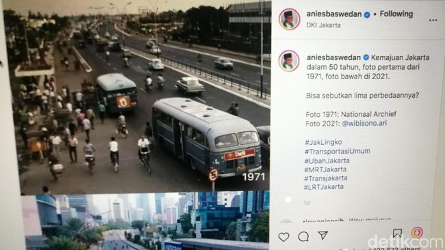 Awalnya foto perbandingan tersebut diunggah melalui Instagram pribadinya, @aniesbaswedan. Dalam posting-an itu, Anies menunjukkan foto tahun 1971 dan di tahun 2021.