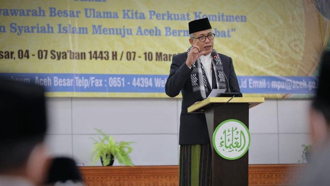 Pernyataan itu disampaikan Nova saat membuka acara musyawarah besar Ulama Aceh Tahun 2022. Kegiatan tersebut digelar di Aula Tgk H Abdullah Ujong Rimba, kompleks Majelis Permusyawaratan Ulama (MPU) Aceh, Senin (7/3) malam.