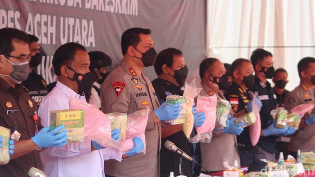 "Dari dua tersangka kita menyita narkotika jenis sabu seberat 189 kg dan ekstasi 38.850 butir," kata Kapolda Aceh Irjen Ahmad Haydar kepada wartawan, Selasa (8/3/2022).