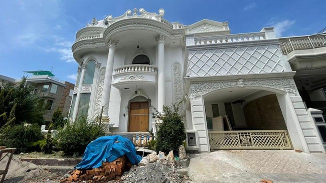 Dalam foto yang diterima detikcom, Rabu (9/3/2022), tampak rumah besar Indra Kenz berwarna putih. Sejumlah material pembangunan rumah terlihat ada di depan rumah Indra Kenz.