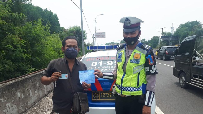 Meski surat kendaraan pemotor tersebut lengkap, polisi tetap memberikan sanksi tilang atas pelanggarannya melintas ke ruas tol.