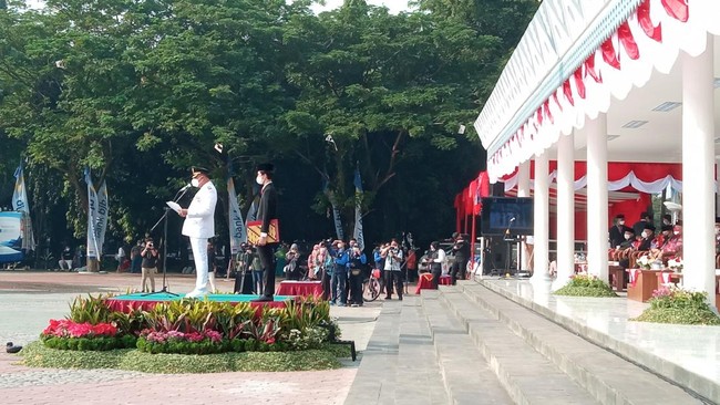 Pemerintah Kota (Pemkot) Bekasi menggelar upacara peringatan hari ulang tahun (HUT) ke-25 Kota Bekasi. Pelaksana tugas (Plt) Wali Kota Bekasi, Tri Adhianto, berbicara soal kebangkitan sektor ekonomi dan kesehatan di masa pandemi COVID-19.