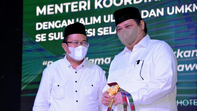 Menteri Koordinator Bidang Perekonomian Airlangga Hartarto menghadiri Forum Silaturahmi Ulama dengan perwakilan Alim Ulama dan UMKM Pondok Pesantren (Ponpes) se-Sulawesi Selatan, di Makassar. Airlangga mengapresiasi peran serta tokoh agama dan tokoh masyarakat dalam penanganan pandemi COVID-19.