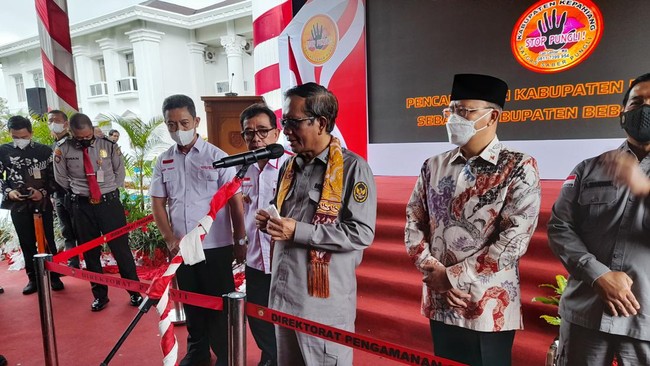 Menko Polhukam Mahfud Md mencanangkan daerah bebas pungutan liar atau pungli di Kabupaten Kepahiang, Bengkulu. Mahfud meminta Bupati hingga ASN di Kepahiang bekerja memakai hati.