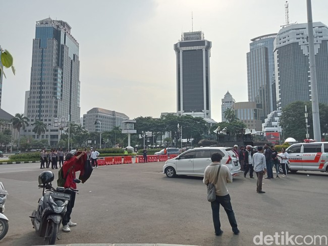 Pantauan detikcom di lokasi, Senin (14/3/2022) pukul 15.30 WIB, massa berangsur pergi meninggalkan area Patung Kuda. Mobil komando massa pun turut meninggalkan lokasi.