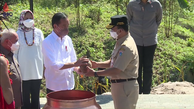 Gubernur Jakarta Anies Baswedan membawa tanah Kampung Akuarium ke Ibu Kota Negara (IKN) Nusantara. Tanah diterima Presiden Joko Widodo (Jokowi). Anies dinilai memainkan simbolisme sindiran halus ke Jokowi.