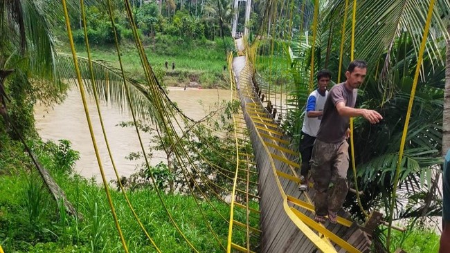 Jembatan gantung di Bireuen, Aceh, putus dan menyebabkan 10 orang terluka akibat tercebur ke sungai. Jembatan itu putus saat warga ramai-ramai mencari orang hilang.