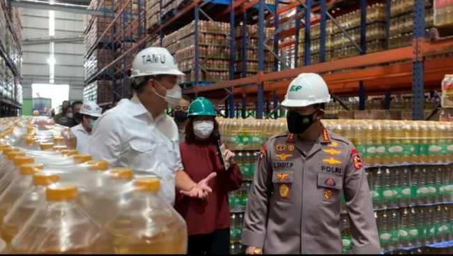 Kapolri Jenderal Listyo Sigit Prabowo dan Menteri Perdagangan Muhammad Lutfi mengecek pabrik minyak goreng di Jakarta Utara. Pabrik yang didatangi kali ini adalah PT Bina Karya Prima Gudang Ex Hargas.