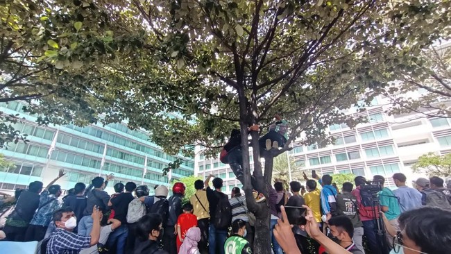 Selain itu, terlihat beberapa orang yang rela nangkring di pohon sambil memegang ponsel masing-masing. Mereka tak hentinya berteriak sambil mengabadikan momen.