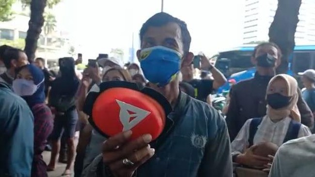 Seorang pria bernama Ari (30) menjadi salah satu warga yang beruntung. Dia mendapatkan pelindung lutut milik Jack Miller.