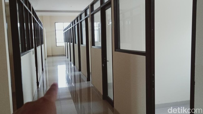 Pantauan detikJateng, deretan kamar itu bisa diakses dengan naik lift. Sesampai di lantai 4, tampak ruangan terbuka bercat abu putih dan krem. Tampak di deretan kanan dan kiri area tersebut terdapat puluhan kamar berukuran sekitar 2,5x3 meter.