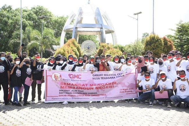 Mahasiswa dan milenial yang tergabung dalam Ganjar Milenial Nusa Tenggara Timur (NTT) menggelar deklarasi dukungan kepada Gubernur Jawa Tengah Ganjar Pranowo untuk maju dalam pilpres 2024. Ganjar didukung sebagai presiden karena dinilai memiliki sifat yang baik dan cerdas.