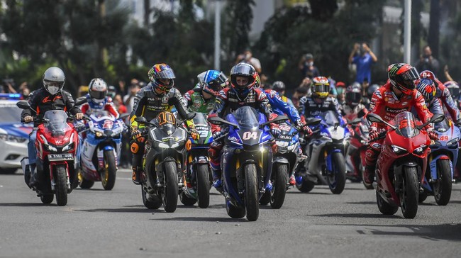 Parade MotoGP yang diikuti 20 pebalap internasional di Jakarta berlangsung meriah. Momen para pebalap kenamaan seperti Marc Marquez hingga Francesco Bagnaia mengaspal di jalan protokol MH Thamrin hingga Bundaran HI disambut antusiasme warga.