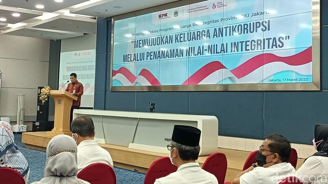 Hal itu diceritakan dalam acara 'Keluarga Berintegritas Provinsi DKI Jakarta' di Balai Kota DKI, Kamis (17/3/2022). Wakil Ketua KPK Alexander Marwata dan Direktur Pembinaan Peran Serta Masyarakat KPK Kumbul Kusdwidjanto S turut hadir di acara tersebut.