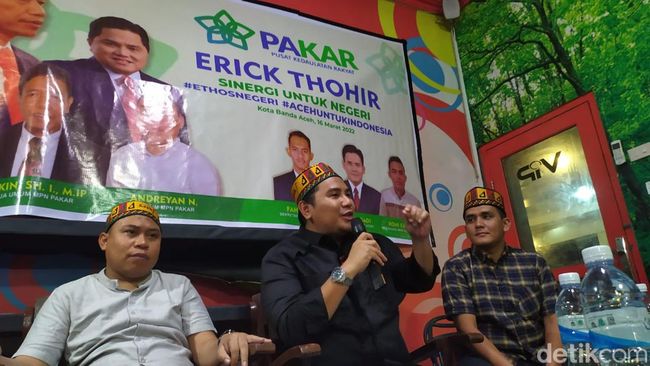 "Kita mendukung Pak Erick Thohir untuk maju sebagai calon presiden pada Pilpres 2024 karena dia adalah sosok yang bersih dan punya integritas," kata Ketua MPW PAKAR Aceh Arif Pribadi dalam keterangannya, Kamis (17/3/2022).
