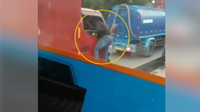 Dalam video, terlihat seorang pria yang mengenakan jaket hitam mendekati truk saat dalam kondisi jalanan macet. Pria itu merebut paksa sesuatu dari sopir truk.