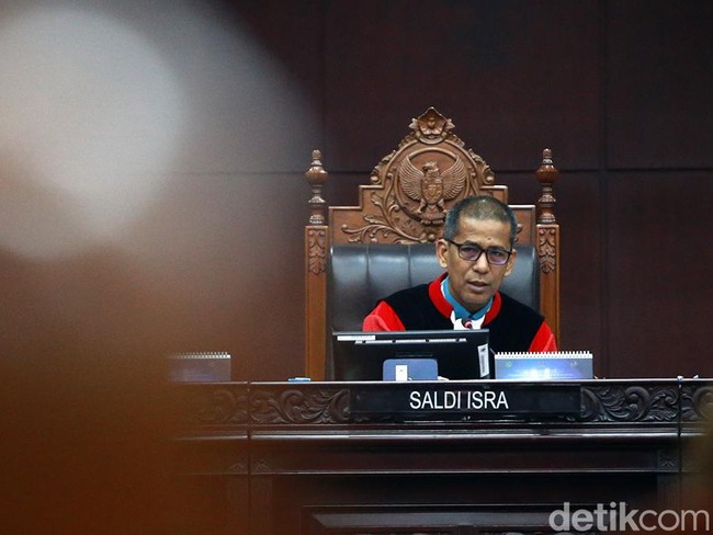 "Misalnya Anda punya cerita di tempat lain, punya bahan bacaan di tempat lain. Di negara‐negara ini misalnya kalau sudah dinyatakan begini satu kali, tidak boleh dimajukan lagi. Jadi itu kemudian yang digunakan untuk menjelaskan, untuk menyatakan kepada kami, dengan demikian ini bertentangan dengan Undang‐Undang Dasar Tahun 1945," beber Saldi Isra.