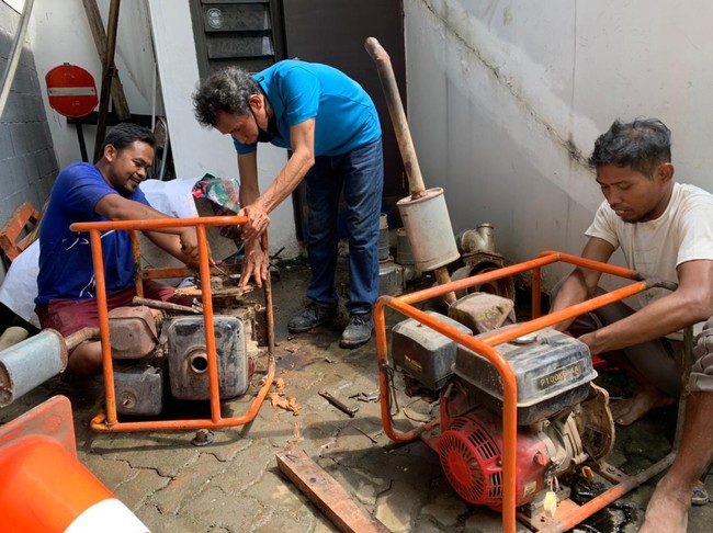 "Itu kita betulin dulu ada yang mesti kita betulin baru mulai efektif lagi nyedotnya itu jam 16.00 WIB. Dua yang pompa kecilnya on terus," kata Karyawan yang bekerja di Kantor Gereja Jemaat Sumber Kasih sejak 2007, Budi Nugroho, saat ditemui di gereja, Jumat (18/3/2022).