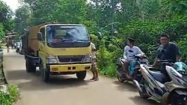 Akses jalan menuju tempat pembuangan akhir (TPA) sampah di Kampung Lameluhur, Kecamatan Cikedal, Pandeglang, Banten, ditutup warga. Penutupan dilakukan karena warga tanggul penyangga tanah (TPT) TPA Sampah Lameluhut tersebut jebol.