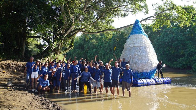 "Tetesan tersebut terdiri dari 3.500 kantong plastik yang ditemukan di sungai-sungai Bali dan ditetapkan untuk mewakili bentuk banyaknya konsumsi kantong plastik tahunan rata-rata keluarga Indonesia," kata salah satu pendiri Sungai Watch, Gary Bencheghib, dalam keterangan tertulis kepada detikcom, Rabu (23/3/2022).