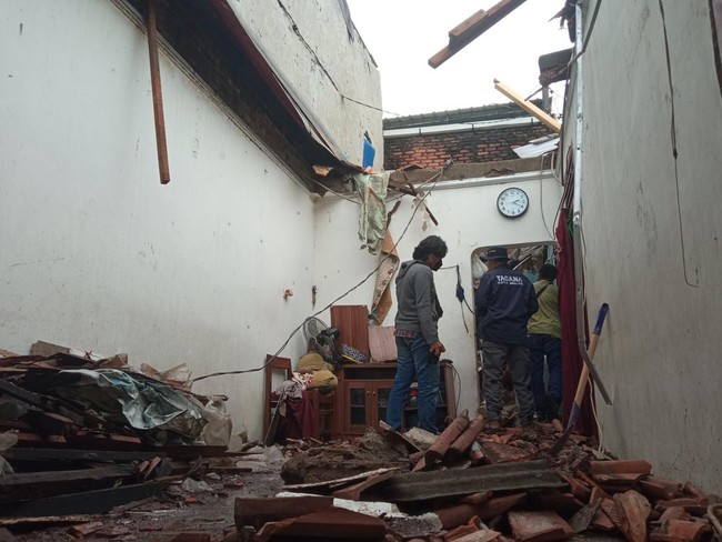 Sebelum atap rumah runtuh, menurutnya, sempat terdengar suara retakan. Tidak lama berselang, langit-langit rumah mulai runtuh secara bersamaan.