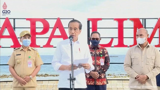 Presiden Joko Widodo (Jokowi) meresmikan penataan tiga lokasi wisata dan kuliner dari Pantai Kelapa Lima, Kota Kupang, NTT, yang dibangun Kementerian PUPR. Jokowi berharap penataan Kupang dapat menarik wisatawan.