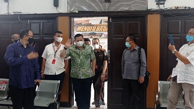 Pantauan detikcom di Pengadilan Negeri Jakarta Selatan, Kamis (24/3/2022), Napoleon hadir di ruang sidang utama dengan mengenakan pakaian batik corak hijau. Saat datang, Napoleon terlihat memberi hormat kepada majelis hakim.