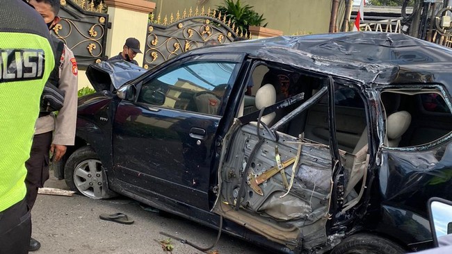 "Menurut keterangan saksi mobil Avanza menabrak tembok toko 'Hery Jaya Per' dan mengakibatkan bodi depan kendaraan rusak berat," ujar Farida.