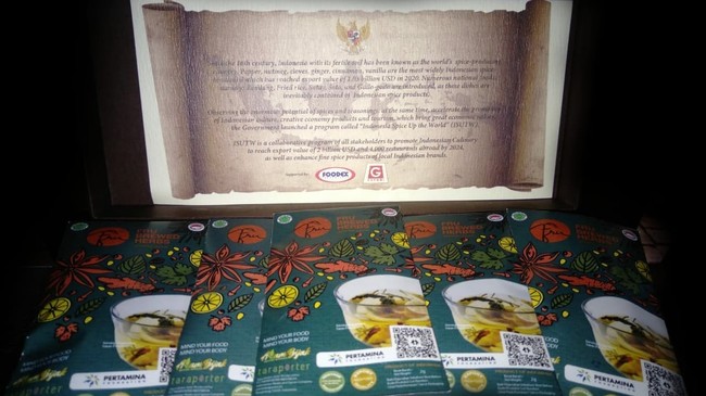 Rempah seduh tersebut merupakan hasil binaan UMKM Academy Pertamina yang menjadi bagian dari merchandise program Indonesia Spice Up The World. Serta dijadikan sebagai cinderamata untuk diberikan secara simbolis kepada para pembalap MotoGP 2022.