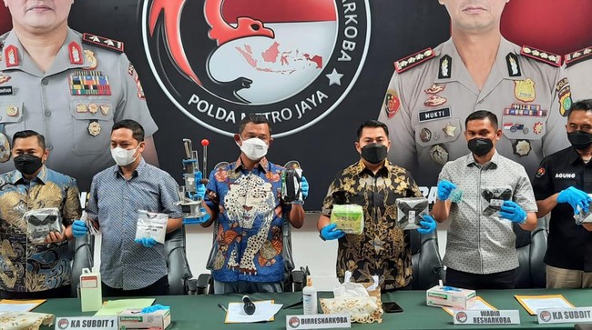 "Ekstasi juga kita berhasil ungkap ada 1.000 butir dari Tersangka AR," kata Dirnarkoba Polda Metro Jaya Kombes Mukti Juharsa di Mapolda Metro Jaya, Jakarta, Jumat (25/3/2022).