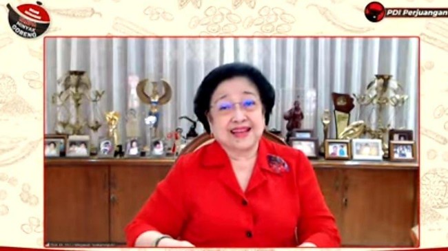 Hal itu diungkapkan Megawati saat memberikan sambutan dalam acara 'Demo Memasak Tanpa Minyak Goreng' di Sekolah PDIP Lenteng Agung, Jaksel, Senin (28/3/2022). Megawati hadir secara virtual.