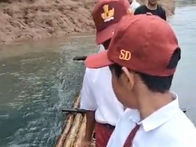 Pada September 2021, video anak dan guru SD itu viral. Mereka menyeberangi sungai dengan rakit bambu. Anak-anak berseragam putih merah menenteng sepatunya dengan kaki basah, susah-payah untuk mencapai sekolah.