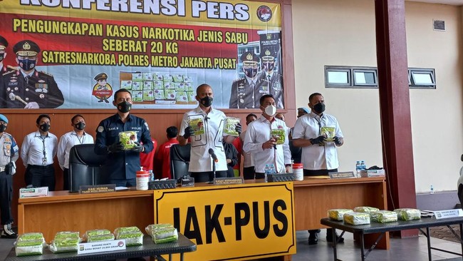 Satresnarkoba Polres Metro Jakarta Pusat membongkar peredaran 20,9 kilogram narkoba jenis sabu atau senilai Rp 30 miliar. Lima orang kurir narkoba ditangkap dalam operasi tersebut.