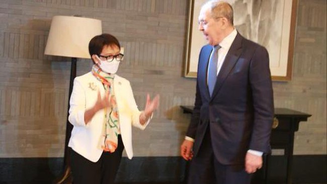Menteri Luar Negeri Republik Indonesia (Menlu RI) Retno Marsudi bertemu dengan Menlu Rusia Sergey Lavrov. Mereka membahas soal situasi di Ukraina. Retno mendorong agar perang Rusia dengan Ukraina dihentikan.