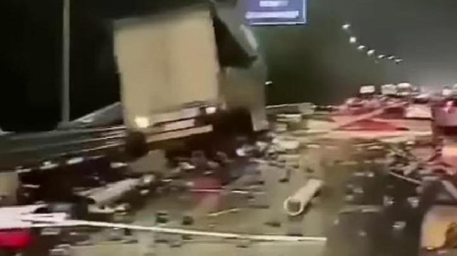 Video peristiwa kecelakaan itu tersebar di media sosial. Dalam video yang beredar nampak paralon berceceran di jalan tol. Nampak jalanan basah digutur hujan.