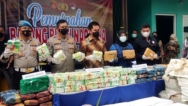 Direktorat Tindak Pidana Narkoba (Dittipidnarkoba) Bareskrim Polri memusnahkan narkoba yang didapat sejak awal tahun hingga Maret 2022. Di antaranya 84.165 gram sabu, 173.244 gram ganja, dan 1.853 butir ekstasi.