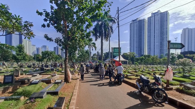 Pantauan detikcom di lokasi pukul 09.15 WIB, hanya terlihat beberapa peziarah yang berdatangan dan tidak seramai biasanya. Pedagang bunga berjejer di dalam TPU.