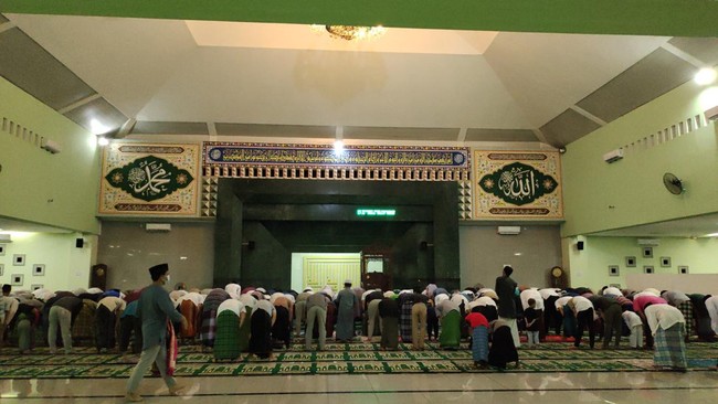 Pantauan detikcom di lokasi, Sabtu (2/4/2022), jemaah mulai berdatangan sekitar pukul 19.10 WIB. Sebelum masuk ke dalam masjid, jemaah terlebih dahulu mencuci tangan dan menggunakan hand sanitizer yang telah disiapkan.