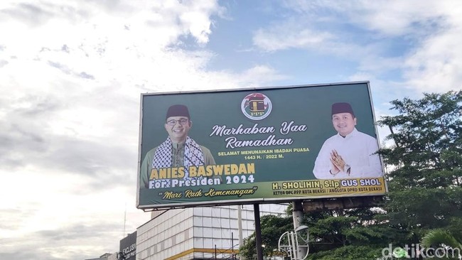 Ada pemandangan tak biasa di Bekasi, Jawa Barat. Baliho elite PPP Bekasi yang menyertakan gambar Gubernur DKI Jakarta Anies Baswedan berikut tulisan 'For Presiden 2024' mejeng di dekat Stasiun Bekasi.