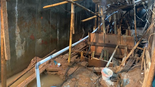 Pembangunan kolam olakan atau bak penampungan air Gereja Protestan Indonesia Bagian Barat (GPIB) Sumber Kasih di Cilandak, Jakarta Selatan, masih berlanjut. Pengerjaan antibanjir itu masih dilakukan hingga sore ini.