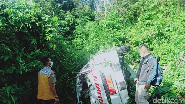 Satu unit ambulans terjun ke jurang sedalam 60 meter di Garut, Jawa Barat. Ambulans masuk jurang diduga karena tak kuat menanjak.