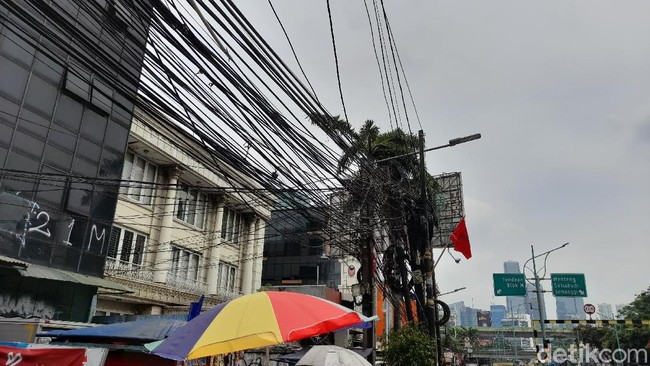 Seorang juru parkir Pasar Mampang Prapatan, Nurali (43), mengatakan kabel-kabel pada tiang sepanjang Jl Mampang Prapatan Raya semrawut dan tidak tersusun rapi. Kabel itu menggelantung turun ke bawah.