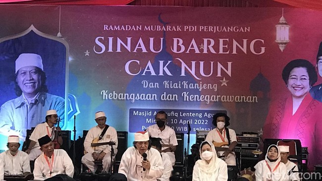 Tokoh intelektual Muslim Indonesia Muhammad Ainun Nadjib atau Cak Nun menyambangi Sekolah Partai PDI Perjuangan (PDIP) di Lenteng Agung, Jakarta Selatan, untuk mengisi ceramah. Sekretaris Jenderal (Sekjen) PDIP Hasto Kristiyanto menyebut kehadiran Cak Nun di acara buka bersama PDIP diundang langsung oleh Ketua Umum Megawati Soekarnoputri.