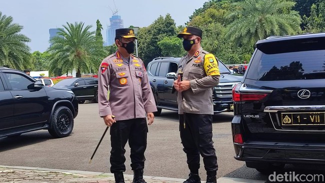 Pantauan detikcom di kawasan Monas, Senin (11/4/2022), pukul 12.45 WIB, terlihat Kapolri Jenderal Listyo Sigit Prabowo datang bersama Kapolda Metro Jaya Irjen Fadil Imran.