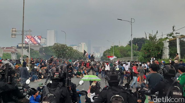 Pantauan detikcom, pada pukul 17.03 WIB, mahasiswa masih memadati Jalan Gatot Subroto. Mobil komando peserta aksi pun masih menyampaikan orasi.