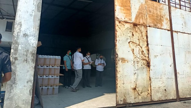 Pantauan detikcom di lokasi, Kamis (14/4/2022) pukul 10.00 WIB, polisi menyegel tumpukan minyak goreng curah kemasan jeriken. Namun, tidak ada barang bukti yang dibawa polisi.